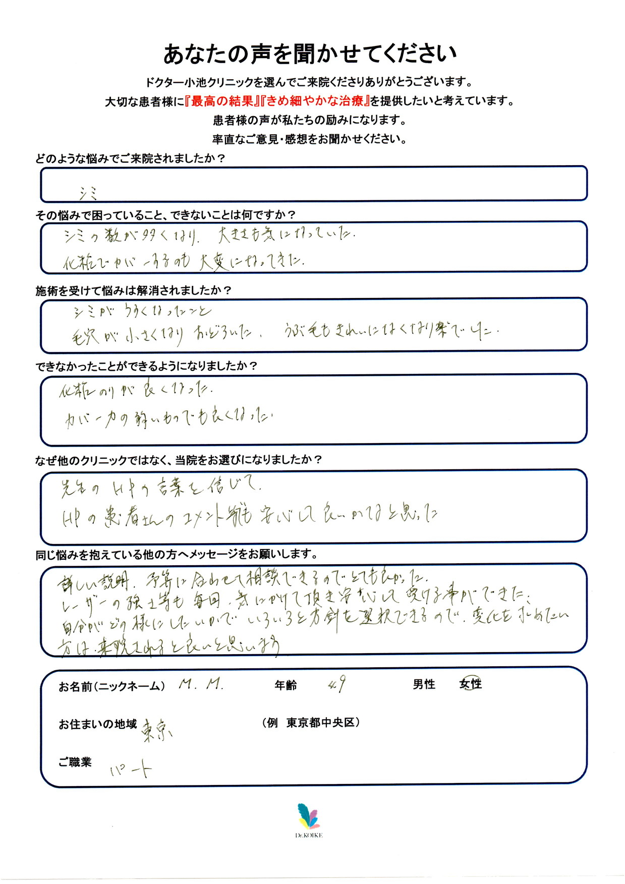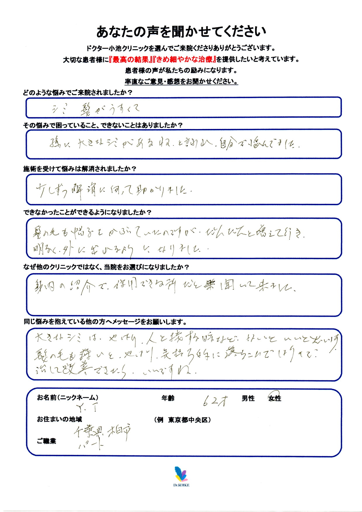 孫に大きなシミがあるね、と言われ、自分で悩んでました。