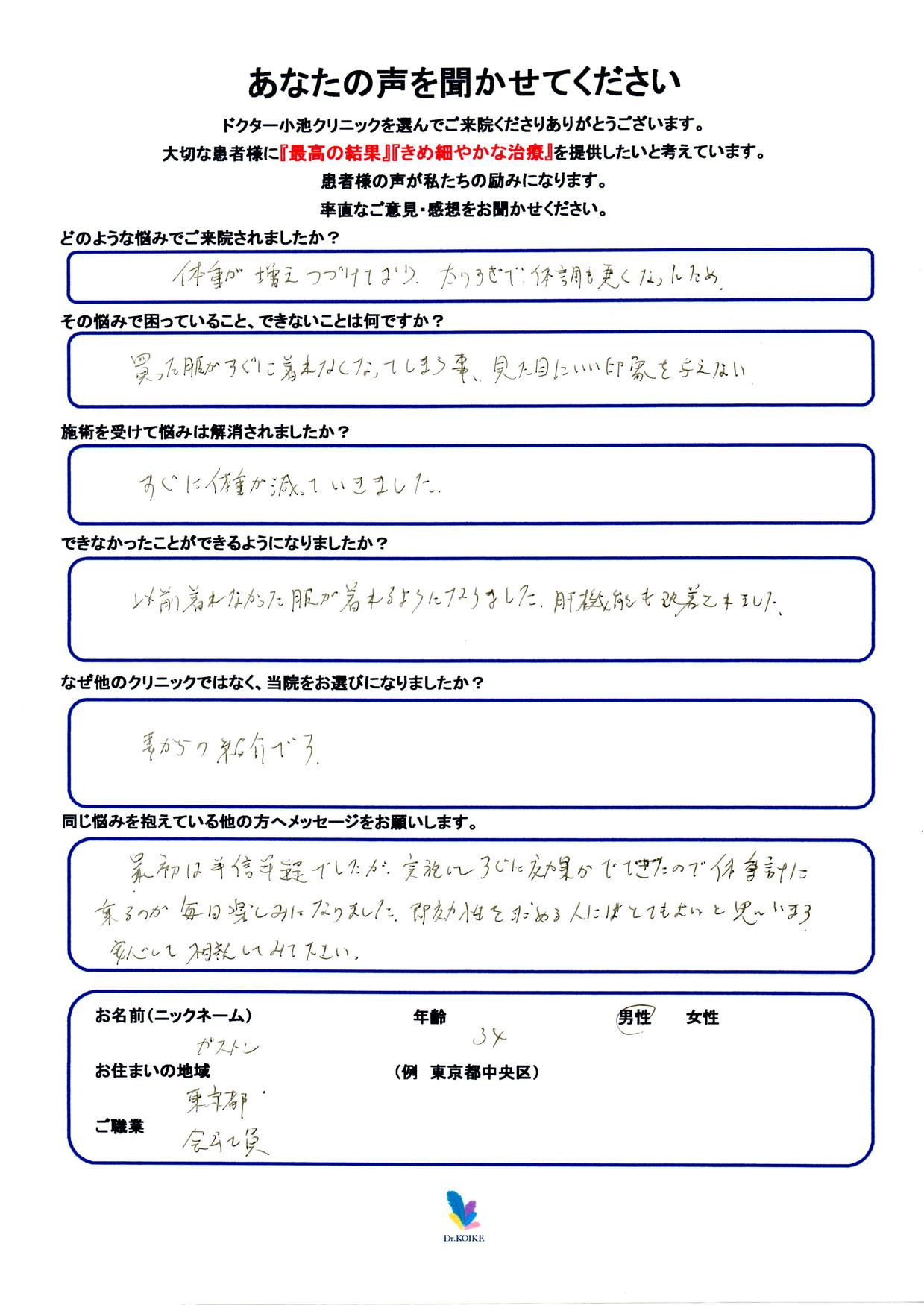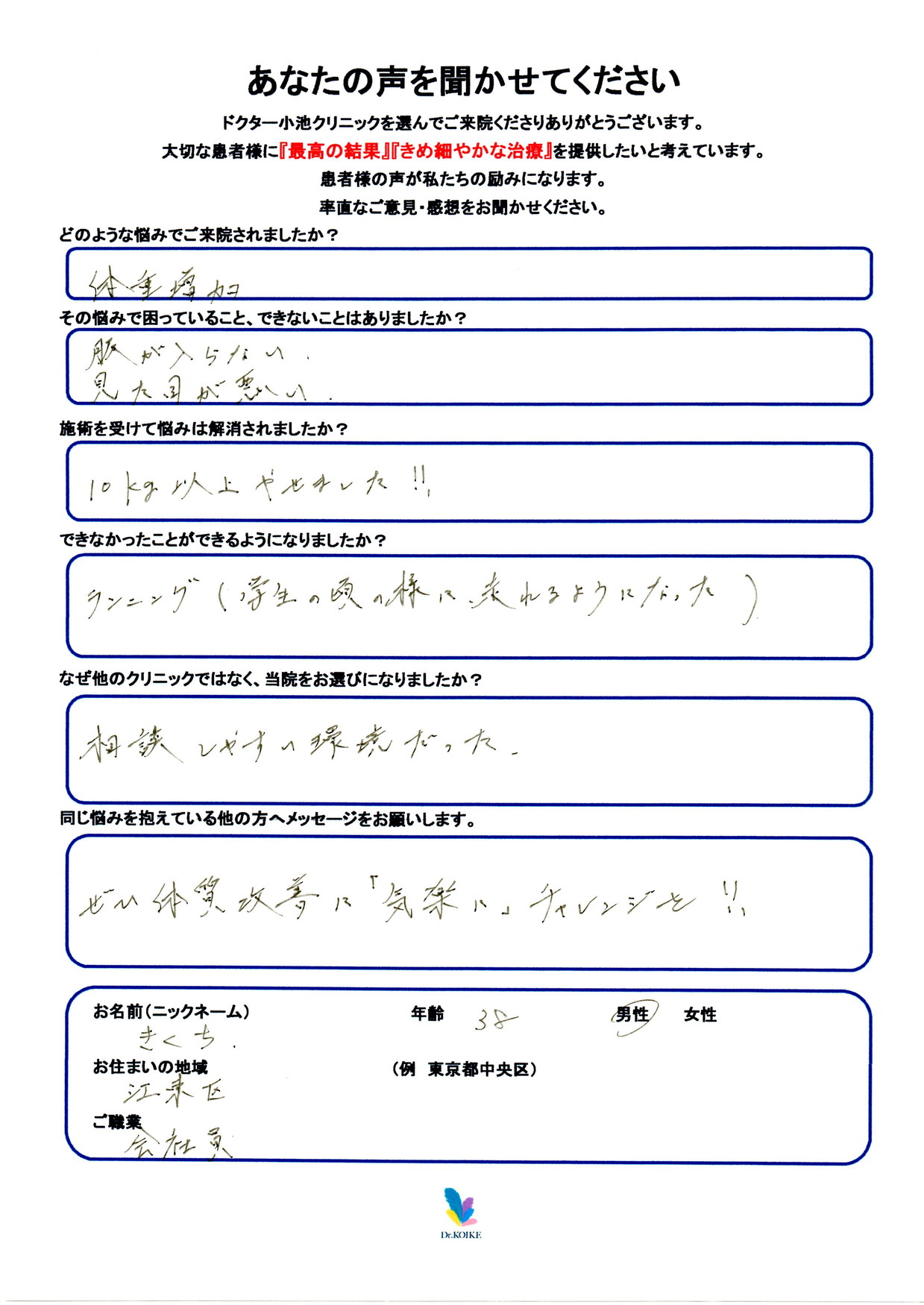 以前着れなかった服が着れるようになりました。肝機能も改善されました。