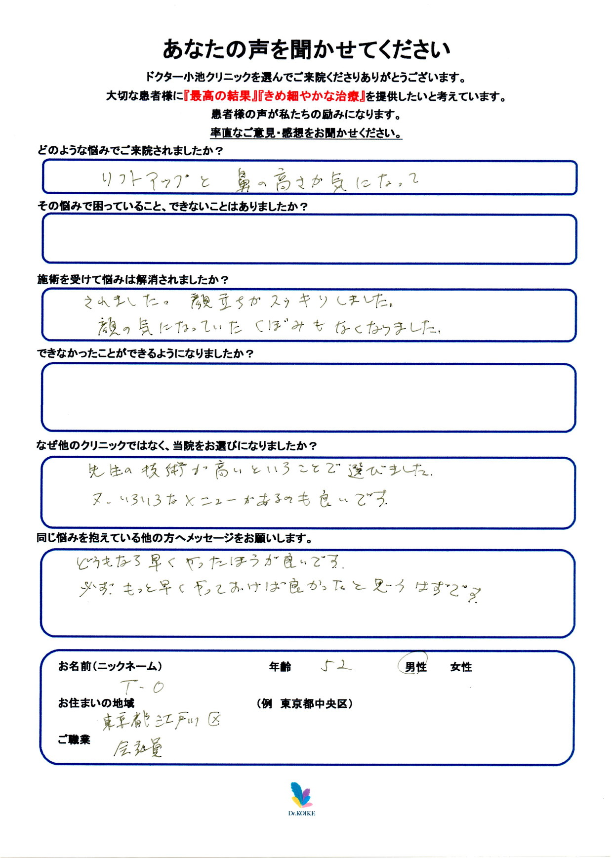他院ではどのような高さにしたいのか希望を聞いてくれないし、他の施術の勧誘がすごいので安心できる所を選びました。