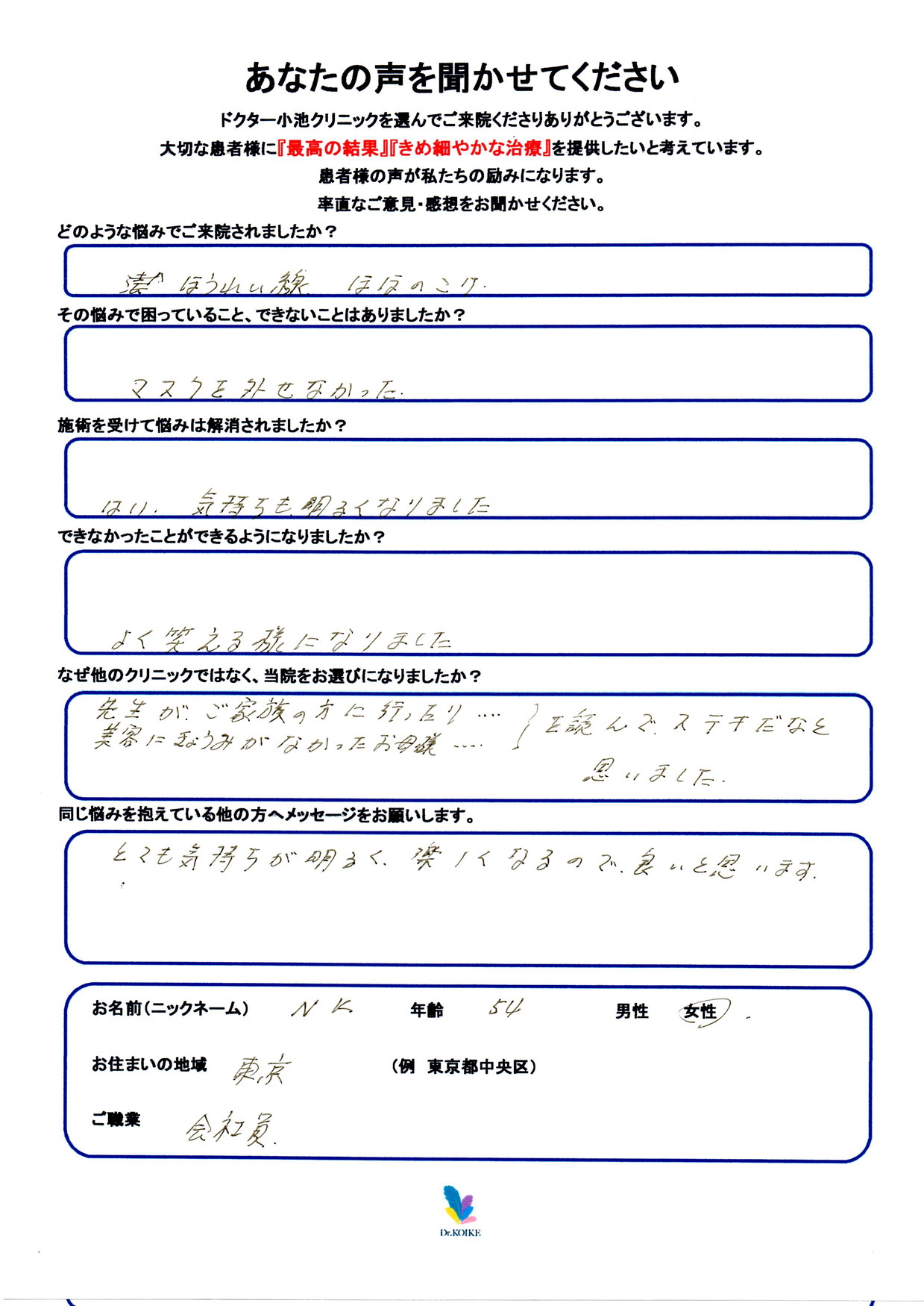 思いっきり笑っても自然な感じでシワが減って、笑うのが怖くなくなりました。