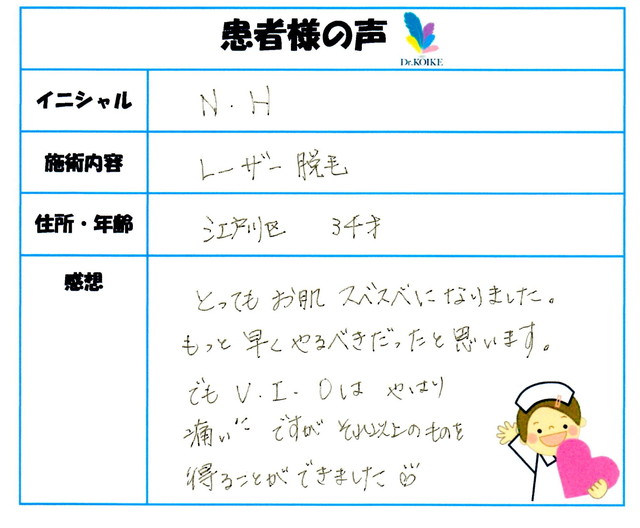 370. 脱毛(ボディ) 東京都 江戸川区 34才女性 N.H様