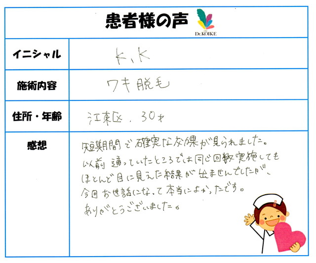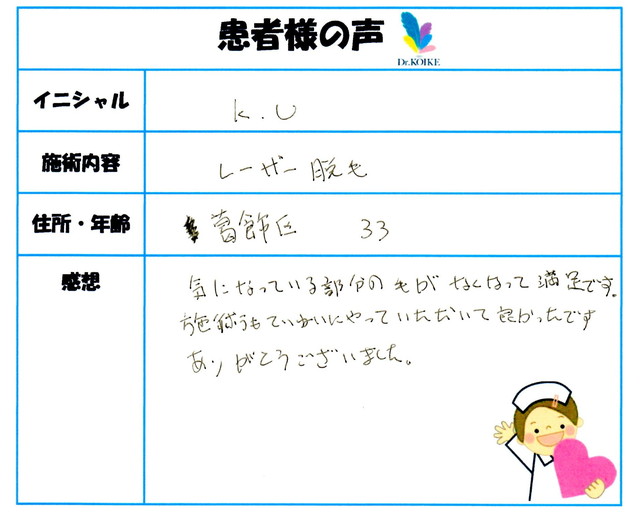 371. 脱毛(ボディ) 東京都 葛飾区 33才女性 K.U様