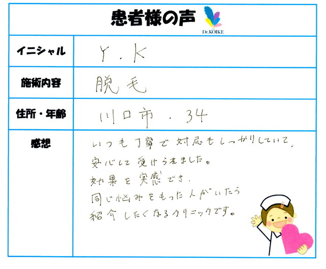 372. 脱毛(ボディ) 埼玉県 川口市 34才女性 Y.K様