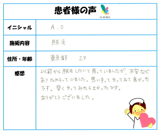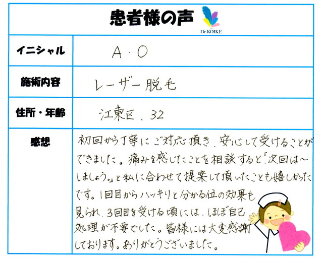 373. 脱毛(ボディ) 東京都 江東区 32才女性 A.O様