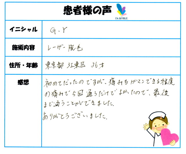 374. 脱毛(ボディ) 東京都 江東区 36才女性 G.Y様