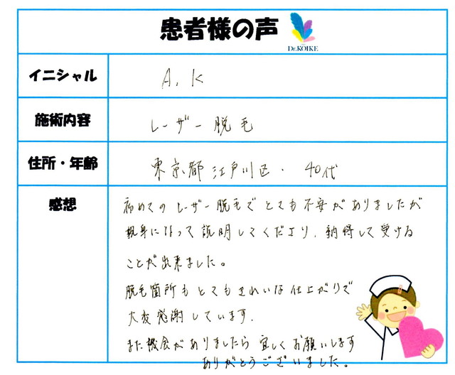 375. 脱毛(ボディ) 東京都 江戸川区 40才女性 A.K様
