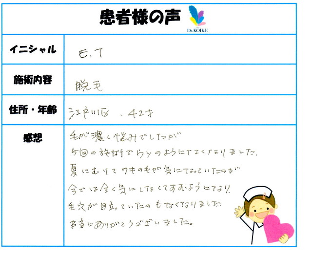 378. 脱毛(ボディ) 東京都 江戸川区 42才女性 E.T様