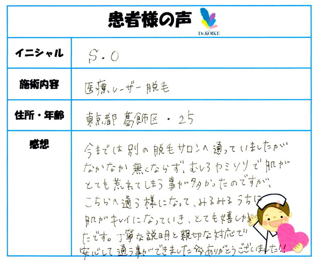 379. 脱毛(ボディ) 東京都 葛飾区 25才女性 S.O様