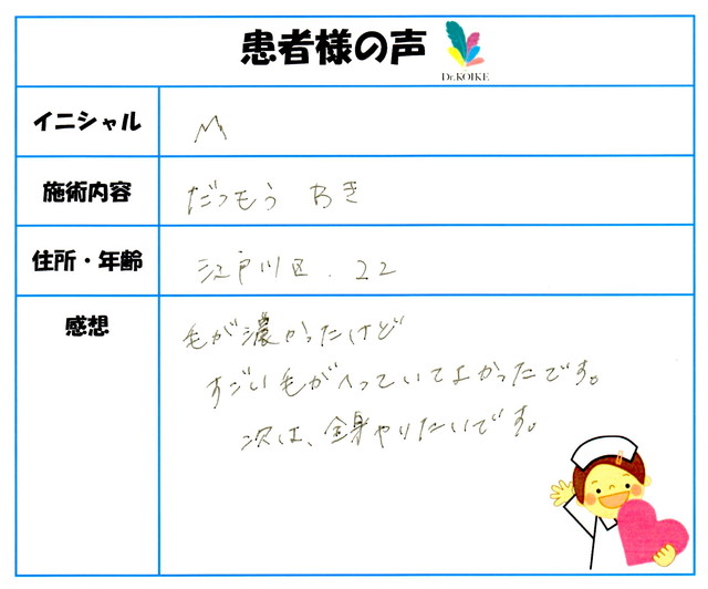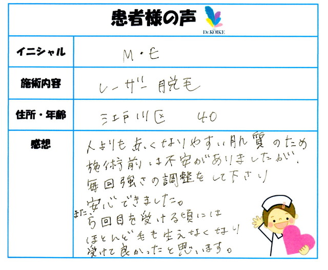 380. 脱毛(ボディ) 東京都 江戸川区 40才女性 M.E様