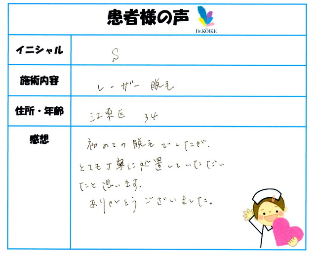 381. 脱毛(ボディ) 東京都 江東区 34才女性 S様