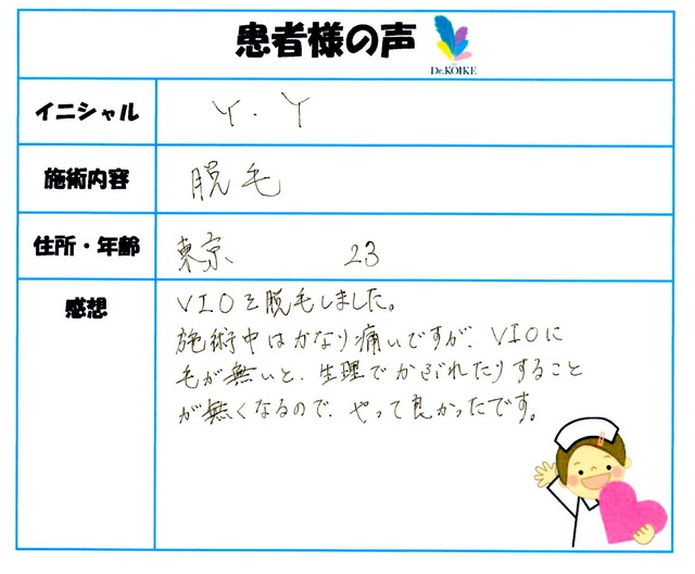 382. 脱毛(ボディ) 東京都 23才女性 Y.Y様
