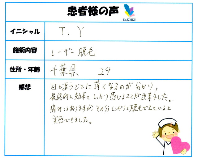 384. 脱毛(ボディ) 千葉県 29才女性 T.Y様