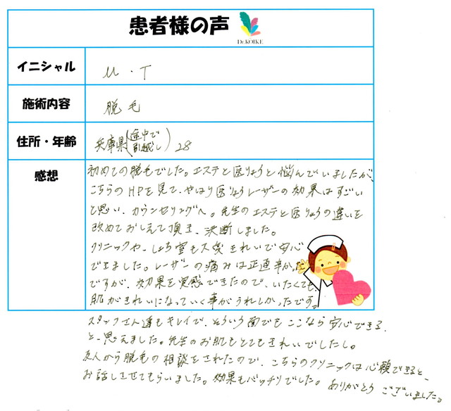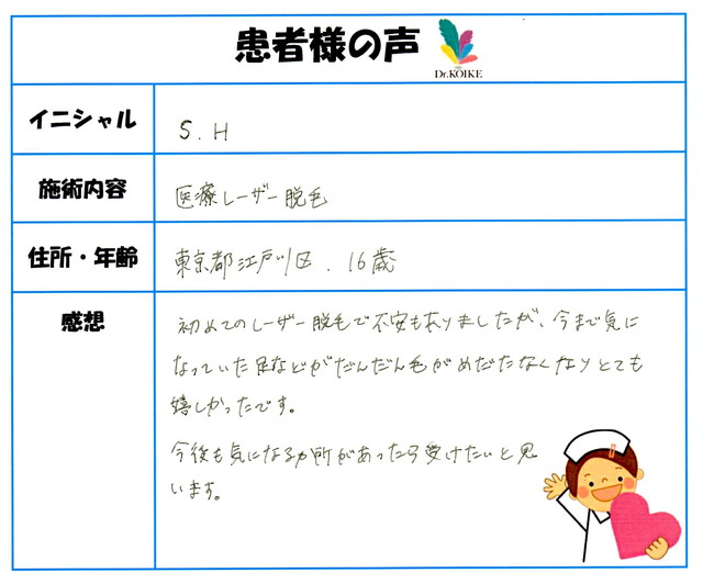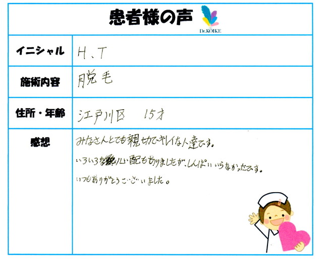 386. 脱毛(ボディ) 東京都 江戸川区 15才女性 H.T様