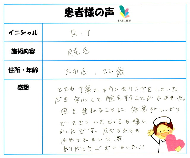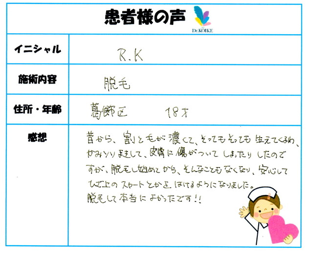 387. 脱毛(ボディ) 東京都 葛飾区 18才女性 R.K様