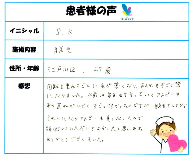 389. アトピー・脱毛(ボディ) 東京都 江戸川区 27才女性 S.K様