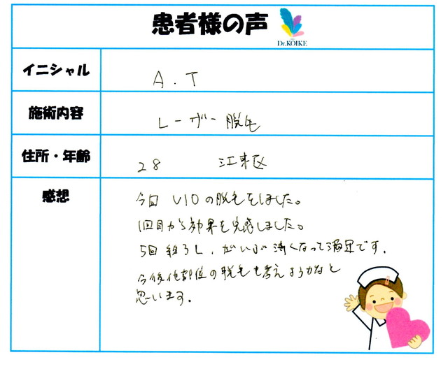 391. 脱毛(ボディ) 東京都 江東区 28才女性 A.T様