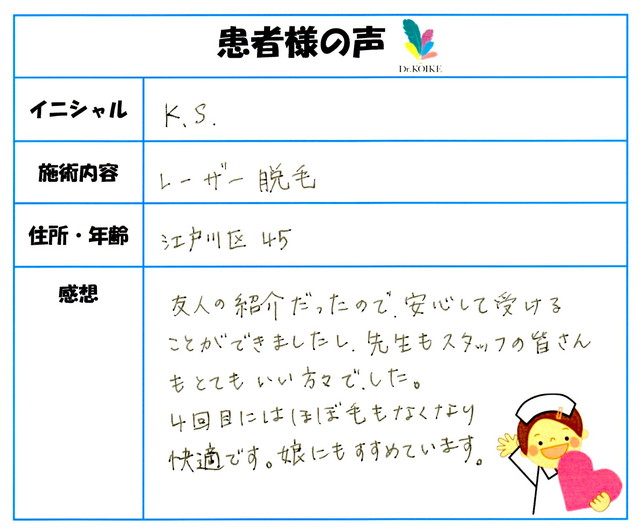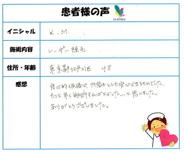 469. 脱毛(ボディ) 東京都江戸川区 48才 K.M様