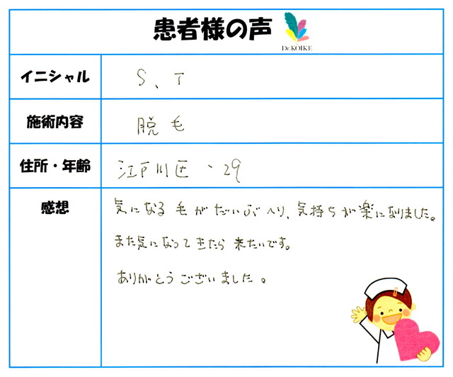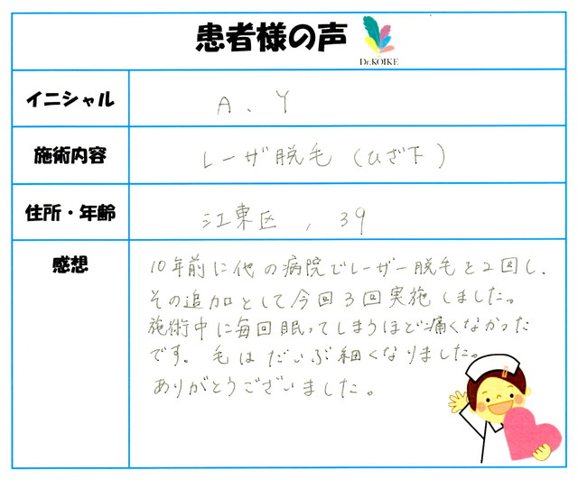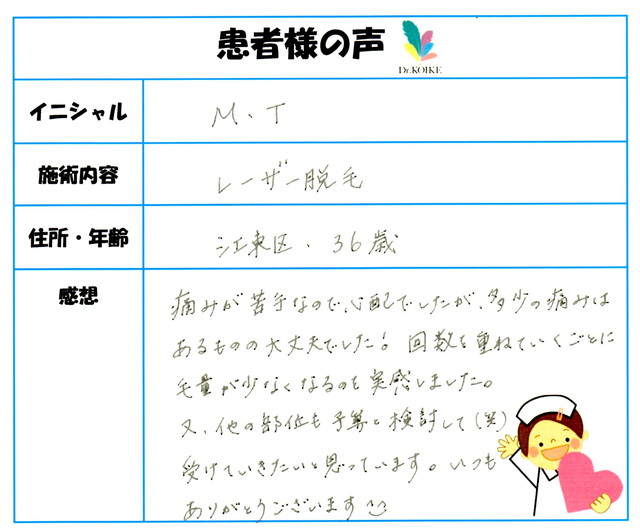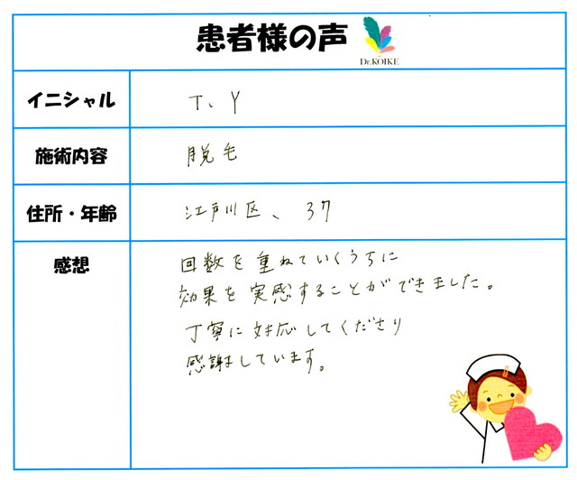 466. 脱毛(ボディ) 江戸川区 37才 T.Y様