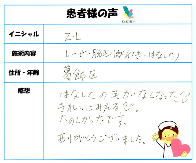 448. 脱毛(フェイス)・脱毛(ボディ) 葛飾区 Z.L様