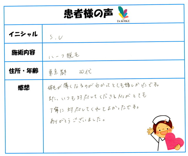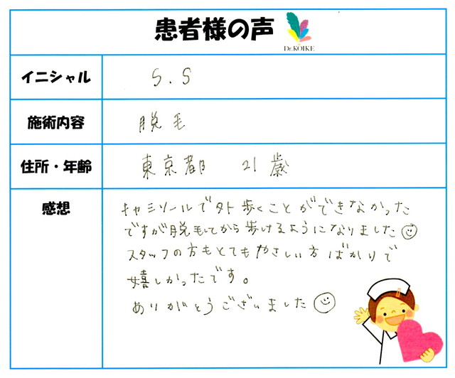 452. 脱毛(ボディ) 東京都 21才 S.S様