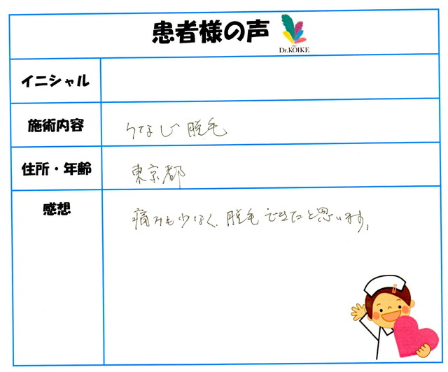 463. 脱毛(ボディ) 東京都 50才 M.H様