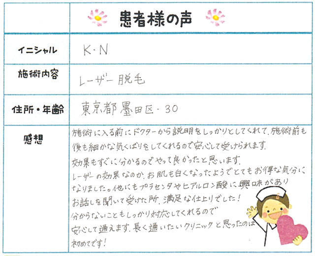 49. 脱毛(ボディ) 東京都 墨田区 30才女性 K.N様