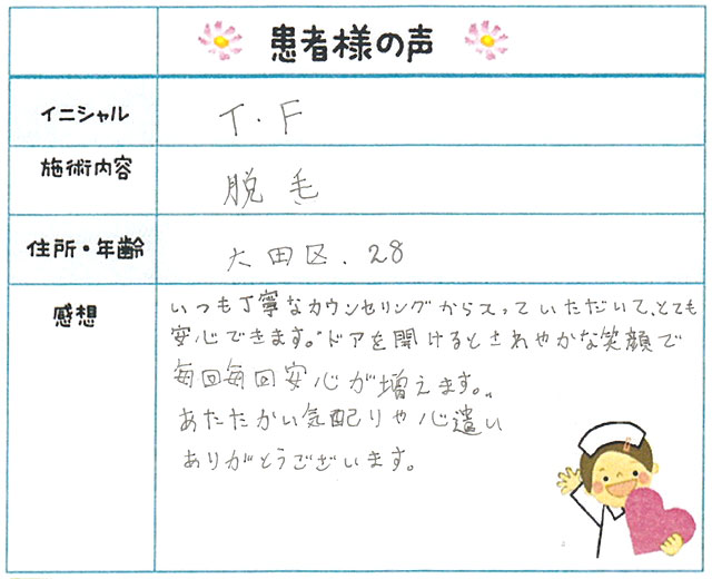 52. 脱毛(ボディ) 東京都 大田区 28才女性 T.F様
