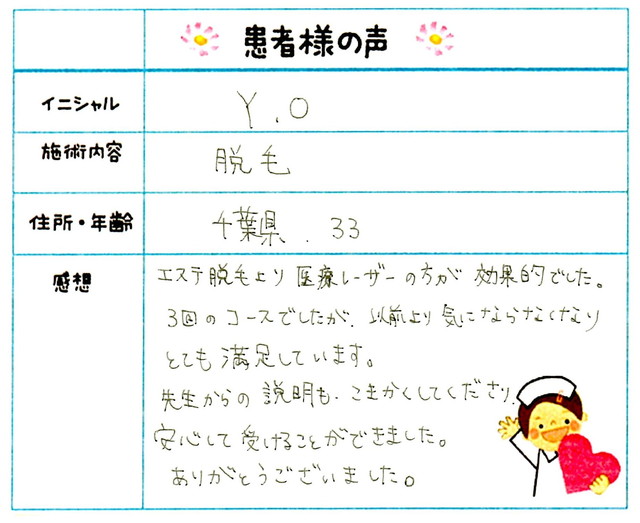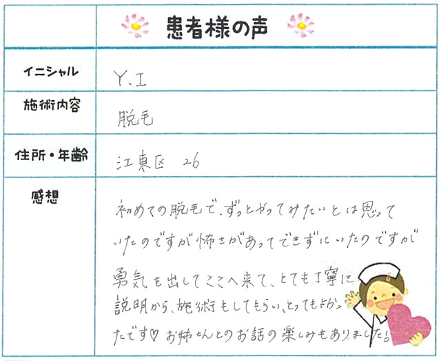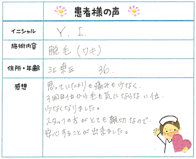 54. 脱毛(ボディ) 東京都 江東区 26才女性 Y.I様