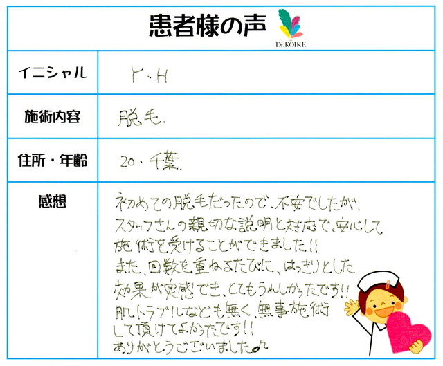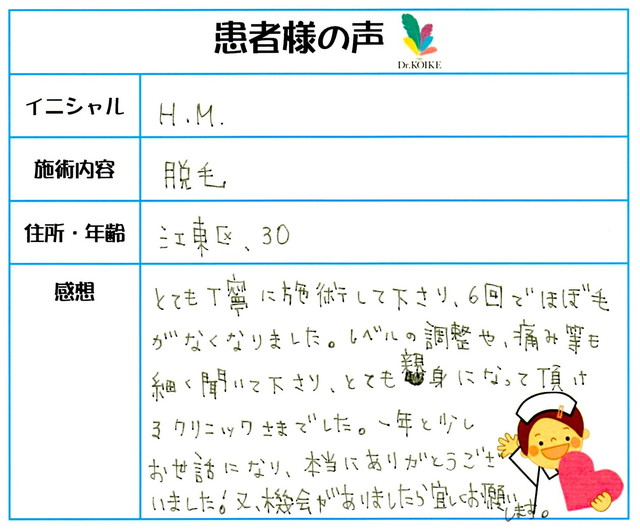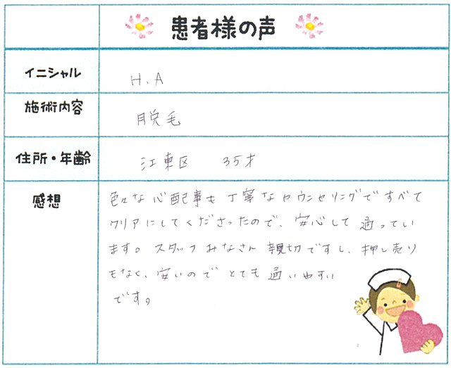 74. 脱毛(ボディ) 東京都 江東区 35才女性 H.A様
