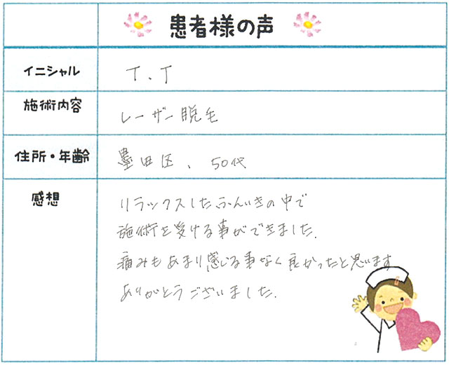 75. 脱毛(ボディ) 東京都 墨田区 50才女性 T.T様