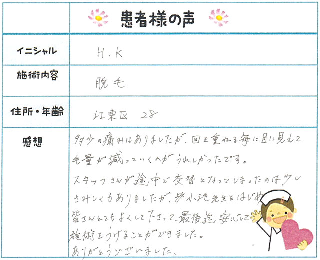 78. 脱毛(ボディ) 東京都 江東区 28才女性 H.K様