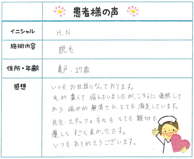 90. 脱毛(ボディ) 東京都 江東区 27才女性 H.N様