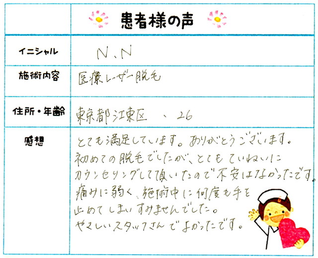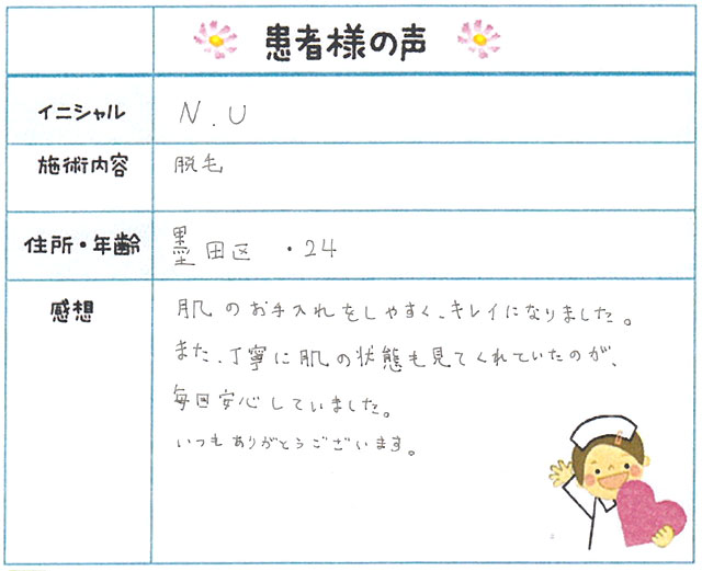 91. 脱毛(ボディ) 東京都 墨田区 24才女性 N.U様