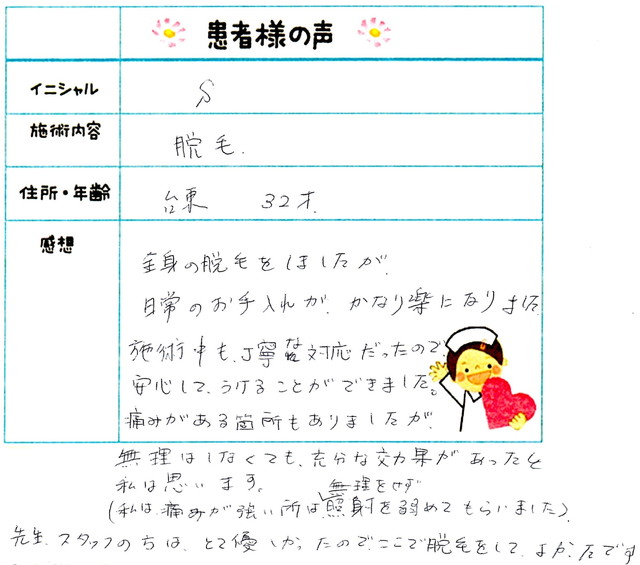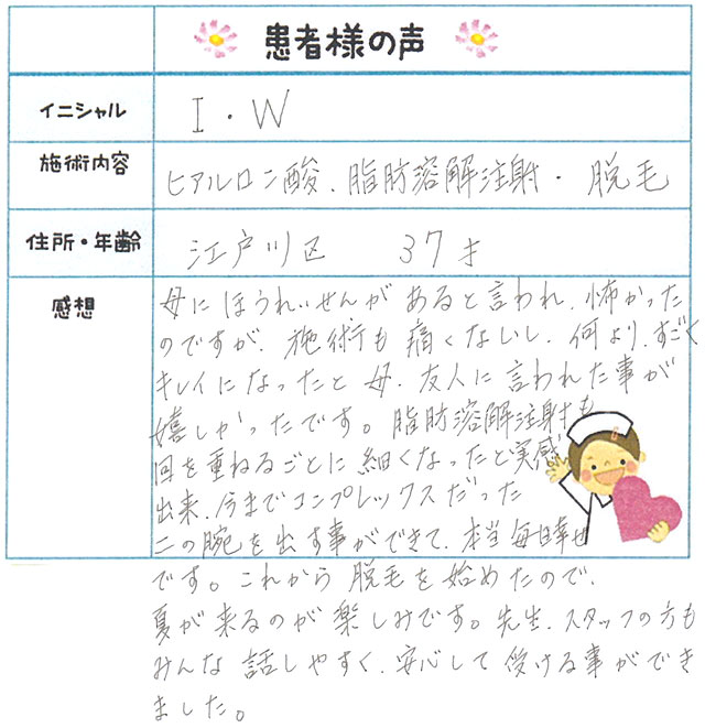 92. 脱毛(ボディ) 東京都 江戸川区 37才女性 I.W様