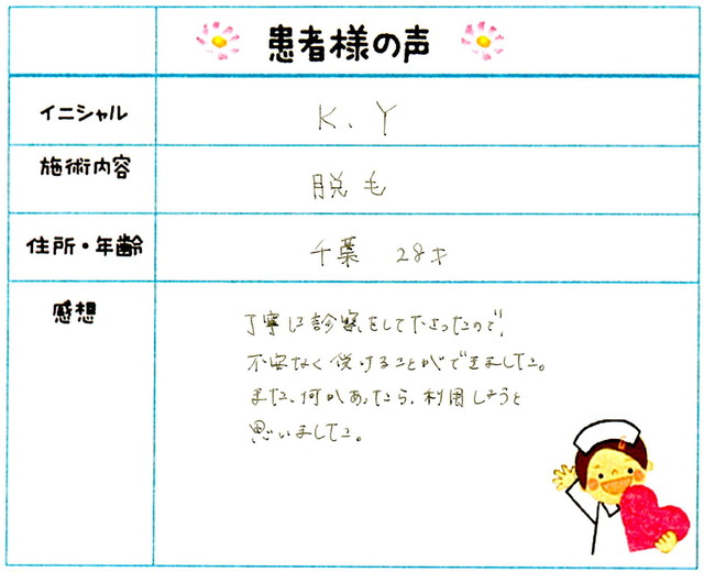 250. 脱毛(ボディ) 千葉県 25才女性 K.I様