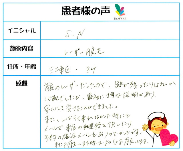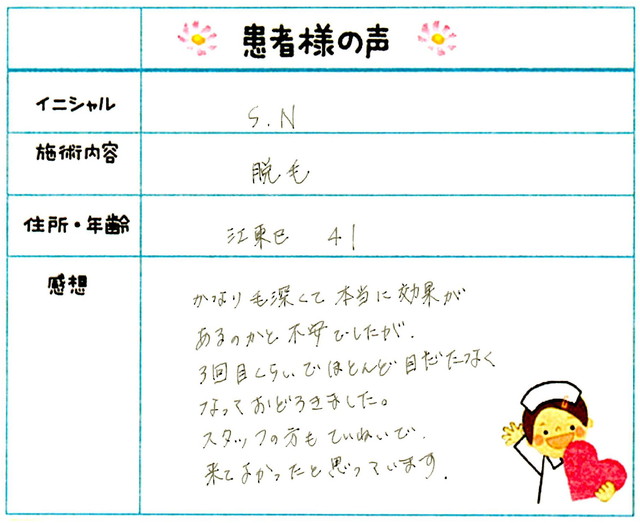 213. 脱毛(ボディ) 東京都 江東区 34才女性 S.N様
