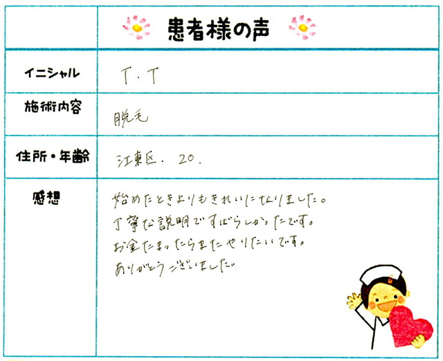 116. 脱毛(ボディ) 東京都 江東区 20才女性 T.T様