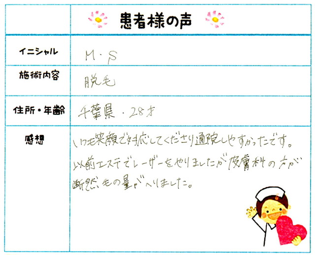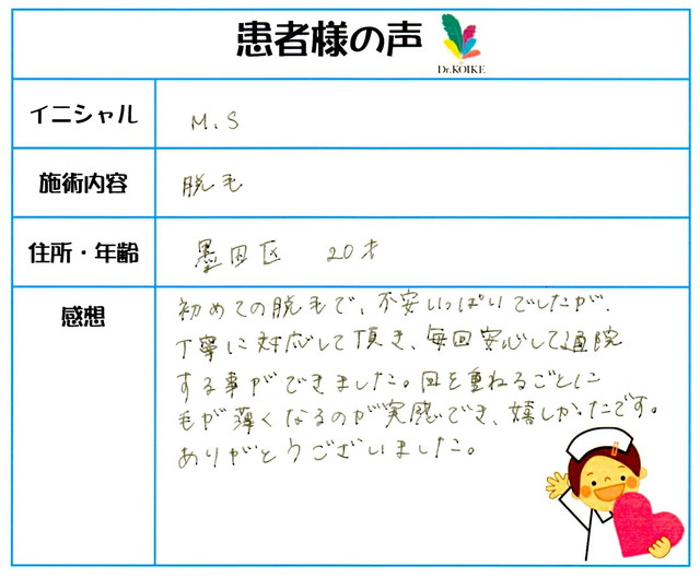258. 脱毛(ボディ) 東京都 墨田区 20才女性 M.S様