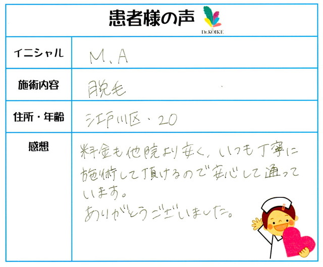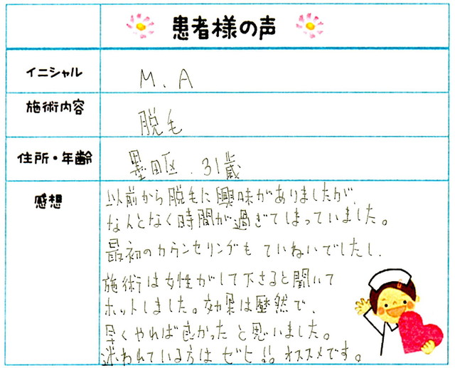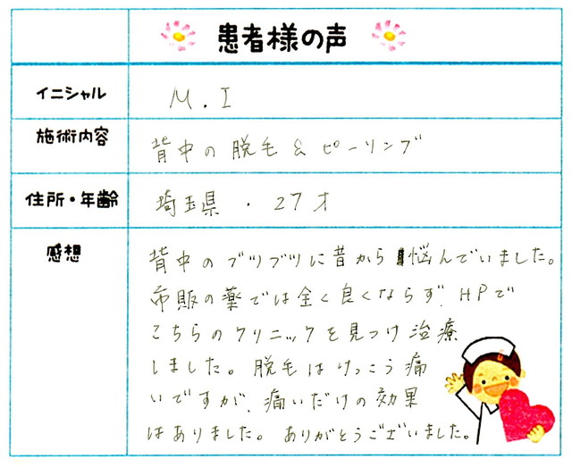 227. 脱毛(ボディ) 東京都 江東区 女性 M.K様