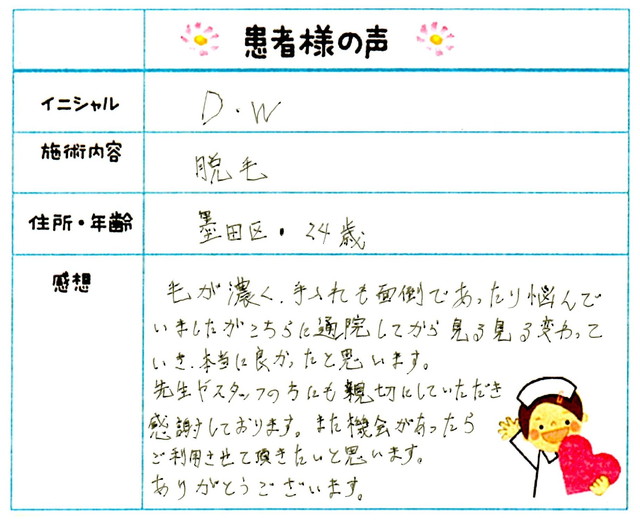 98. 脱毛(ボディ) 東京都 墨田区 37才女性 A.S様