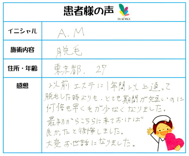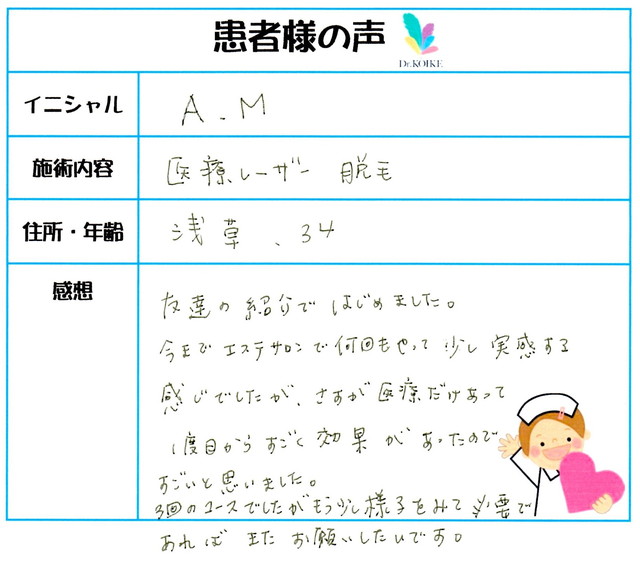 218. 脱毛(ボディ) 東京都 台東区 34才女性 A.M様