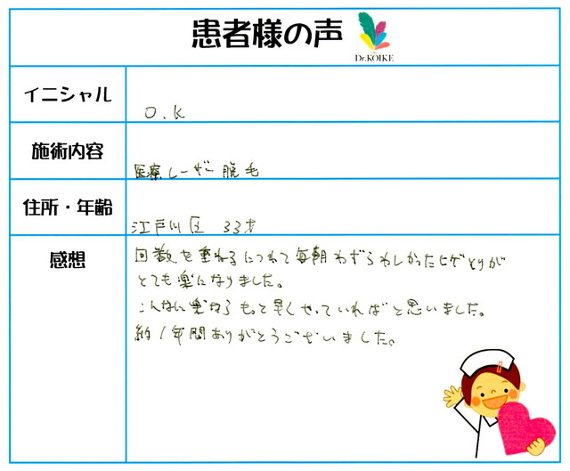 216. 脱毛(ボディ) 東京都 江戸川区 33才女性 O.K様