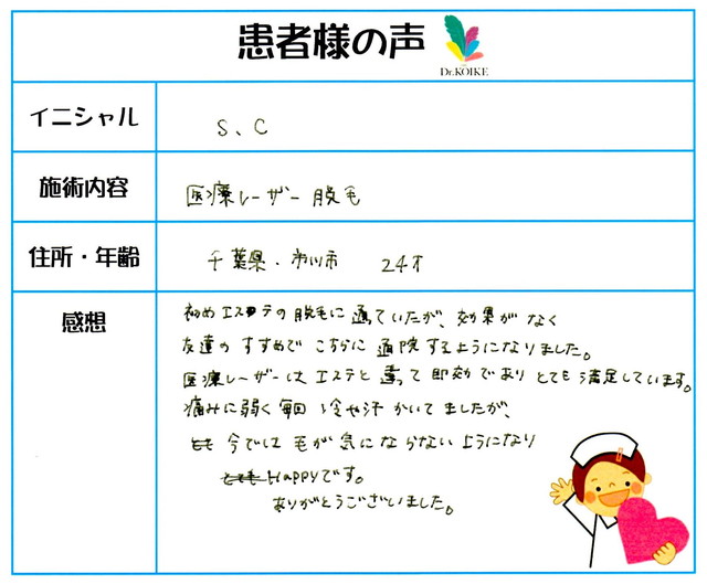 219. 脱毛(ボディ) 千葉県 市川市 24才女性 S.C様