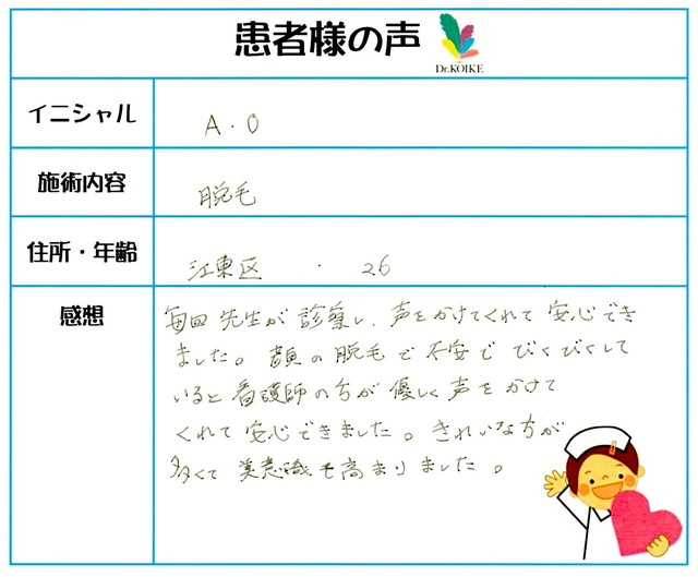 226. 脱毛(ボディ) 東京都 江東区 26才女性 A.O様