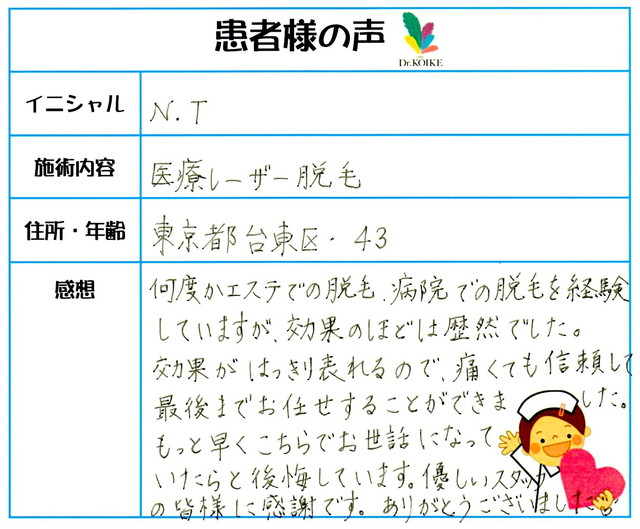 229. 脱毛(ボディ) 東京都 台東区 43才女性 N.T様