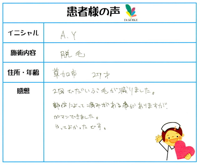 239. 脱毛(ボディ) 埼玉県 草加市 27才女性 A.Y様