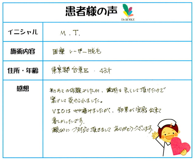 251. 脱毛(ボディ) 東京都 台東区 43才女性 M.T様