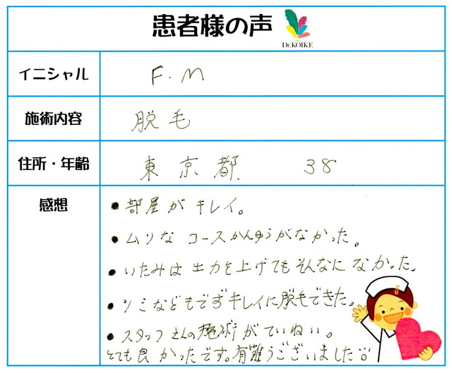 261. 脱毛(ボディ) 東京都 38才女性 F.M様
