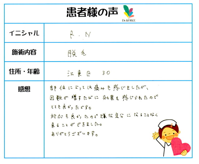 268. 脱毛(ボディ) 東京都 江東区 30才女性 R.N様