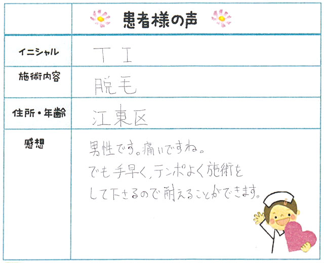 44. ヒゲ脱毛 東京都 江東区 36才男性 T.I様